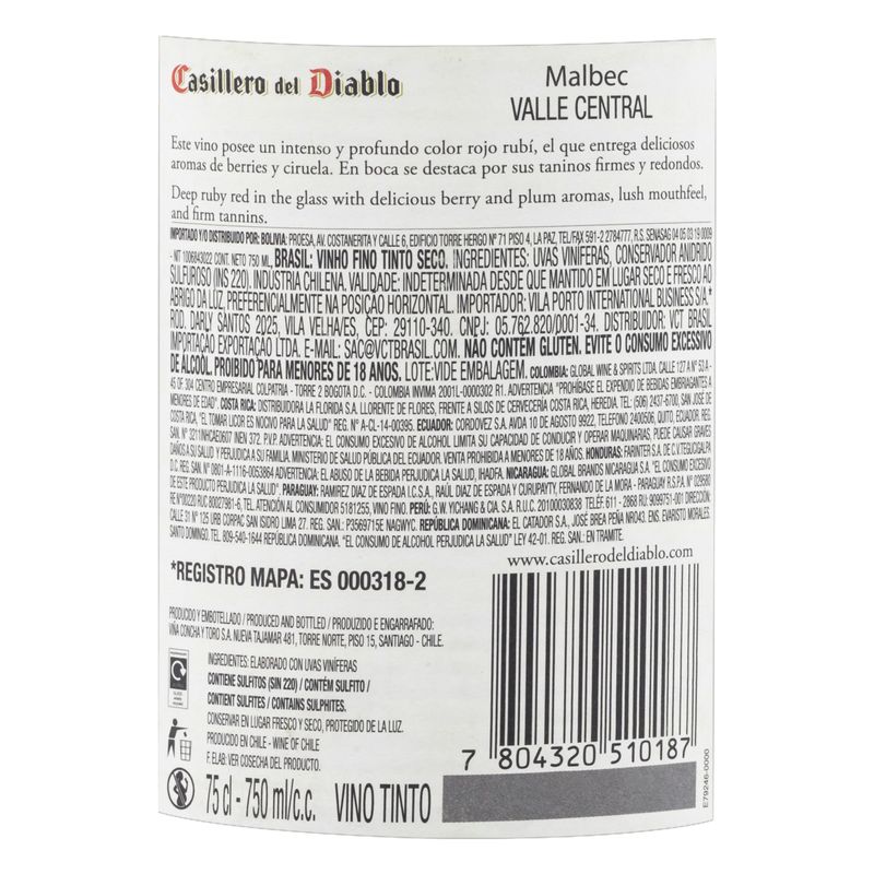 Vinho Chileno Casillero Del Diablo Malbec 750ml