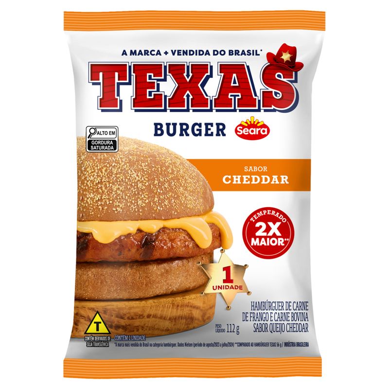 Hambúrguer de Carne de Frango e Bovina Seara Texas Burger com Queijo Cheddar 12g