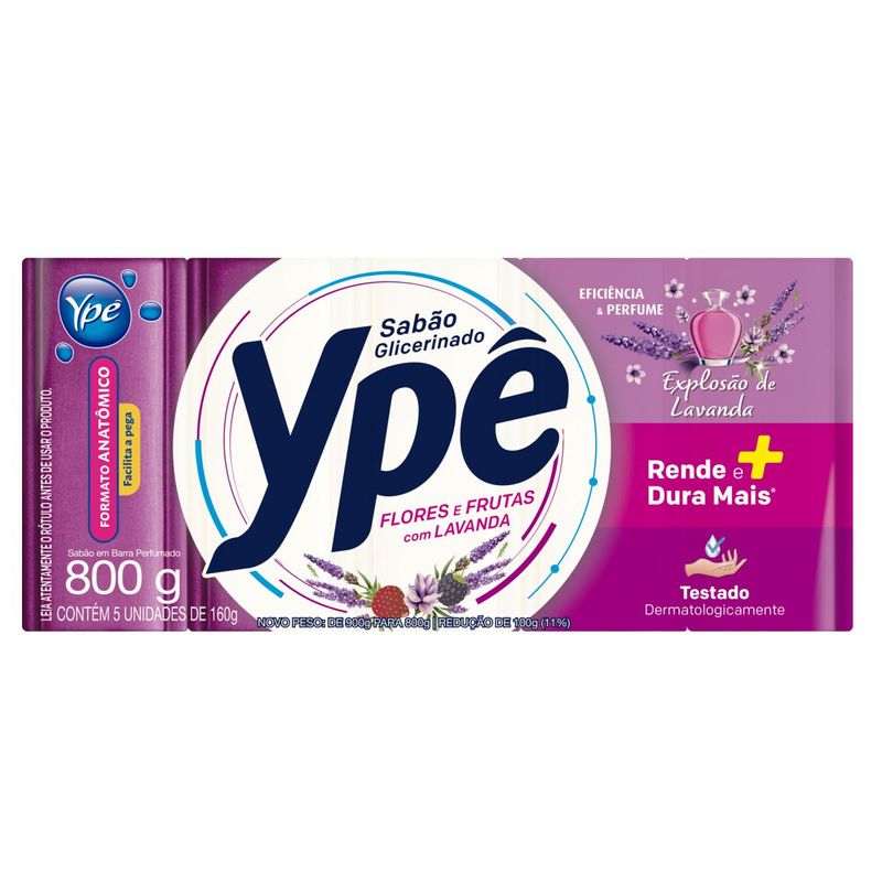 LimpezaCozinhaSabão Em BarraSabão em Barra Glicerinado Ypê Flores e Frutas 800g com 5 Unidades de 160g