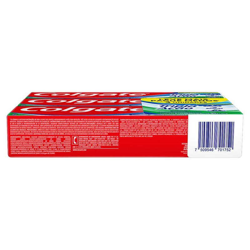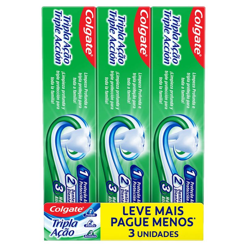 O creme dental Colgate Tripla Ação Menta Original proporciona tripla proteção para você e sua família: dentes brancos, protegidos e um hálito refrescante. Benefícios para você: Sua fórmula com flúor previne as cáries, proporcionando proteção para você e sua família Ajuda a remover as manchas amarelas para manter os seus dentes brancos Possui delicioso sabor de menta, que combate o mau hálito e deixa a sua boca com uma incrível sensação de refrescância Tripla proteção para você e sua família Leve Mais Pague Menos Sua fórmula com flúor previne as cáries, proporcionando proteção para você e sua família Ajuda a remover as manchas amarelas para manter os seus dentes brancos Possui delicioso sabor de menta, que combate o mau hálito e deixa a sua boca com uma incrível sensação de refrescância Tripla proteção para você e sua família Leve Mais Pague Menos