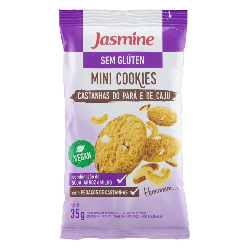 Minibiscoito Cookie Vegano Integral Jasmine Castanha-do-Pará e Caju s/ Glúten Pacote 35g