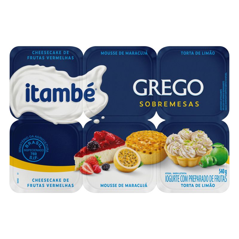 Frios e LaticíniosIogurteGregoIogurte Grego Itambé Sobremesas Cheesecake Frutas Vermelhas + Mousse de Maracujá + Torta de Limão 540G