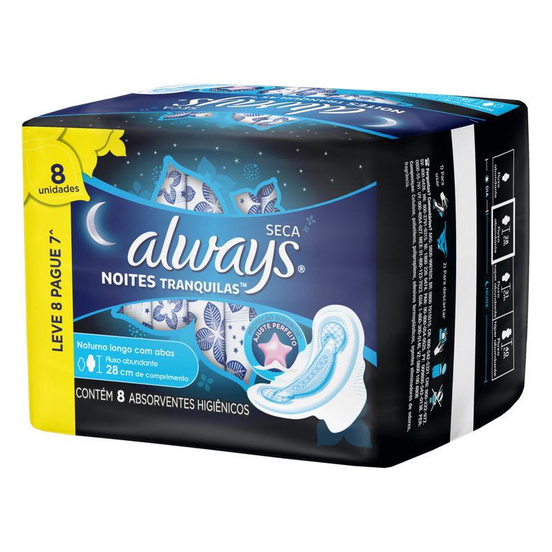 Absorvente Always Cobertura Seca com Abas Noturno Noites Tranquilas Leve 8 Pague 7