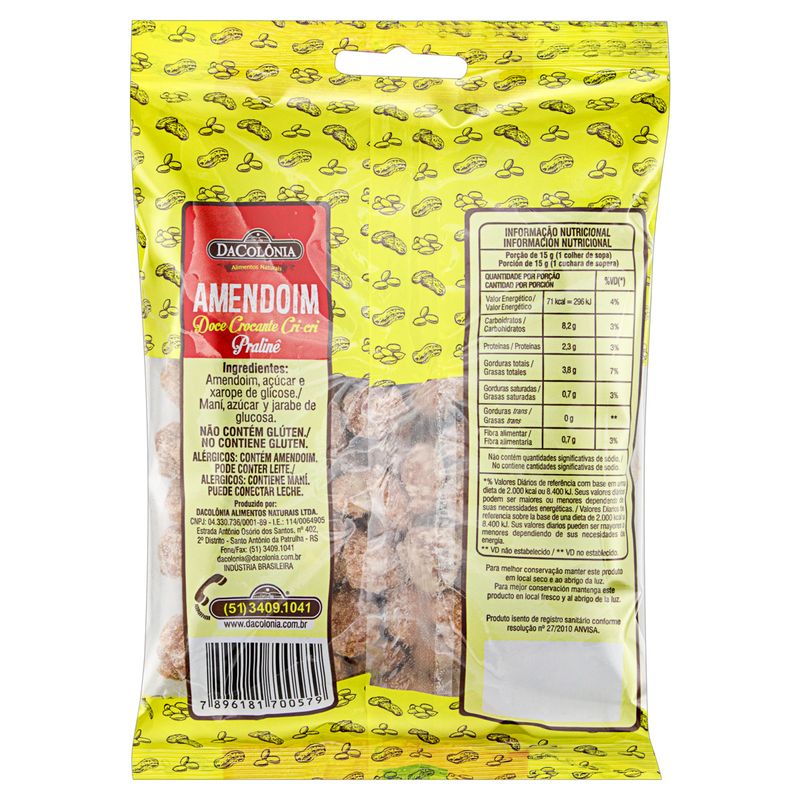 Amendoim Doce DaColônia Crocante Cri-Cri s/ Glúten 140g