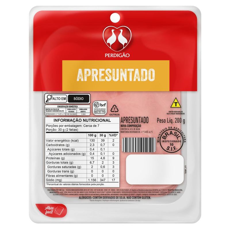 Produzido com rigorosos padrões de qualidade, o apresuntado Perdigão é embalado a vácuo, o que garante a preservação do sabor e da frescura por mais tempo. Essa técnica de embalagem evita a oxidação e a contaminação, proporcionando um produto seguro e pronto para o consumo. Você pode confiar na marca Perdigão, que é sinônimo de tradição e excelência no mercado brasileiro.
