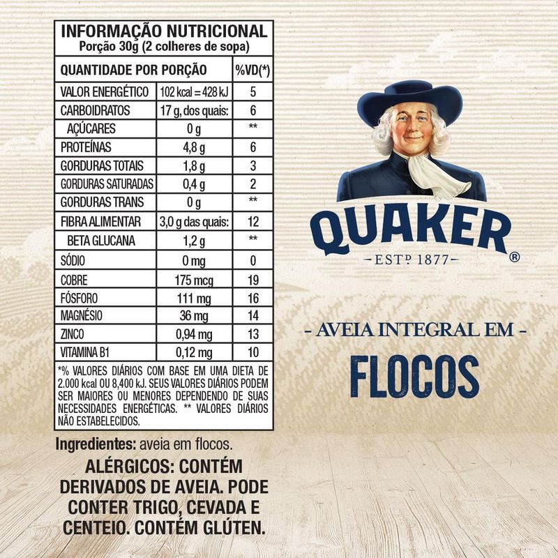 MerceariaMatinalAveiaAveia em Flocos Regulares Quaker Caixa 165g
