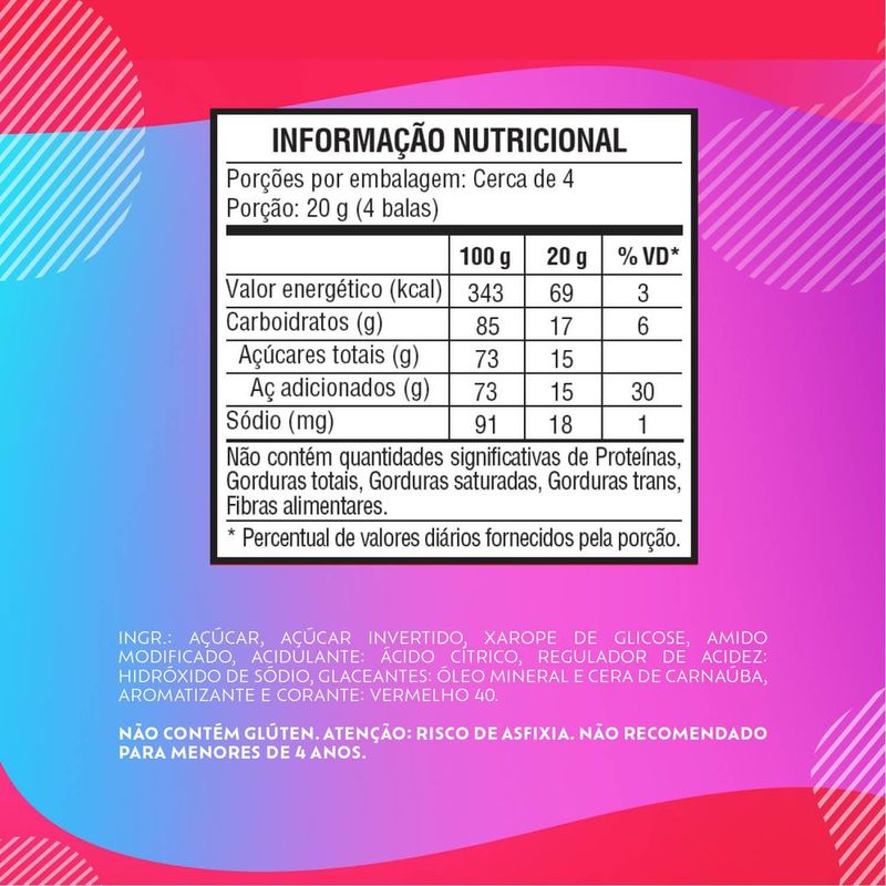 A textura macia e a consistência da bala garantem uma experiência de mastigação agradável. Ao morder, você é surpreendido por um recheio que se mistura perfeitamente com o sabor da goma, criando uma combinação irresistível. É ideal para compartilhar com amigos ou saborear em momentos de descontração.