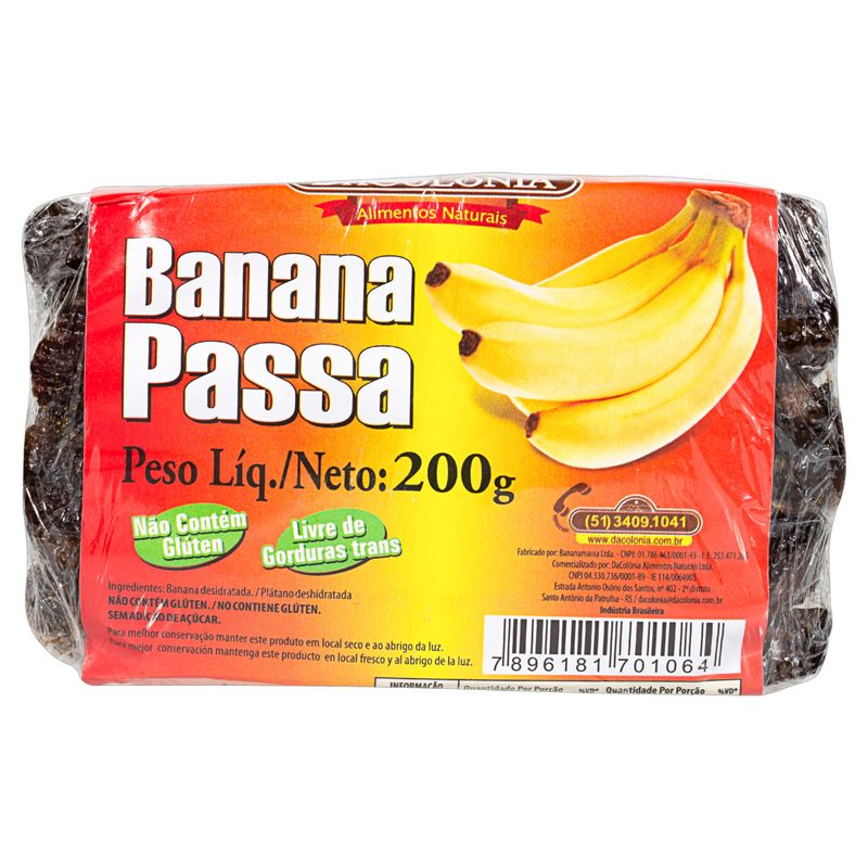 Em embalagem de 200g, a Banana Passa Dacolonia é fácil de armazenar e levar para onde você for. Ideal para quem tem uma rotina agitada e precisa de um lanche rápido e nutritivo. A qualidade Dacolonia garante que você está consumindo um produto que respeita os mais altos padrões de produção, focando sempre na saúde e bem-estar dos consumidores.