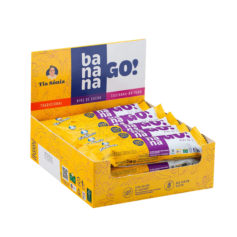 Barra Banana Go! Tia Sônia Zero Açúcar sem Glúten Nibs de Cacau 22g