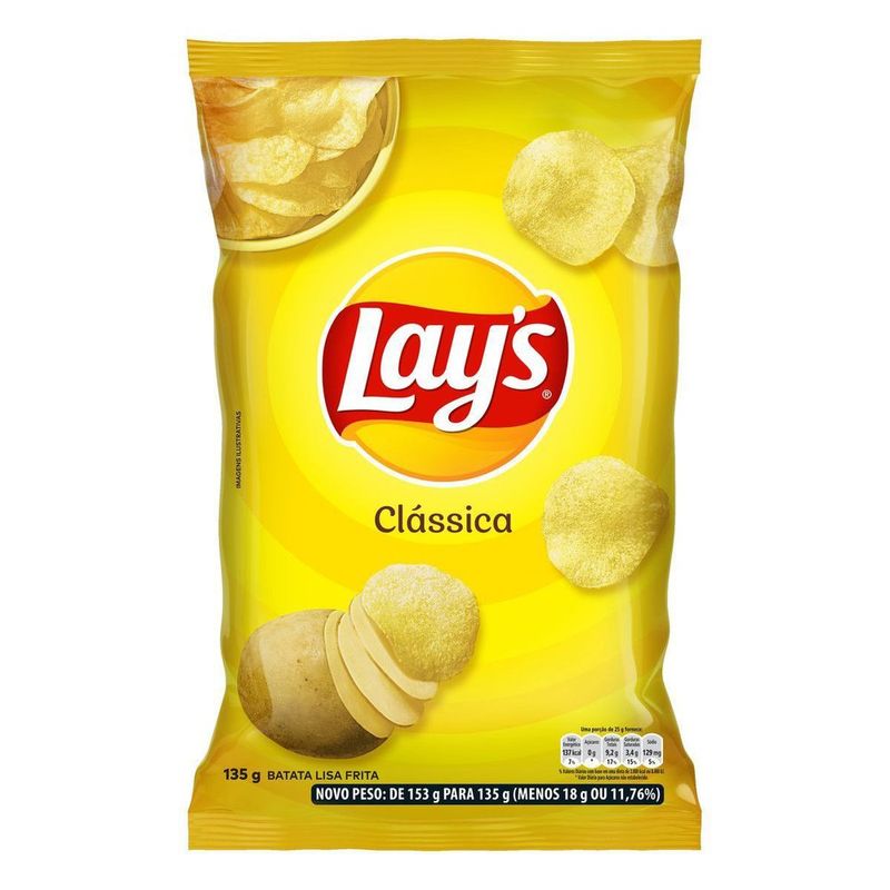 Batatas especialmente colhidas, selecionadas, fatiadas e preparadas em até 48h. A batata LAY'S® Clássica é 100% batata, óleo e sal. Perfeitamente crocante e cheia de sabor, por isso, ela é tão especial e ideal para todos os momentos. Não contém glúten.
