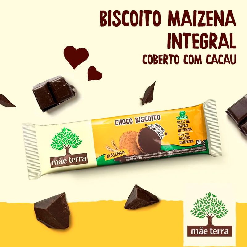 Biscoito Mãe Terra Choco Vegano Integral Maizena Cobertura Cacau Pacote 58g