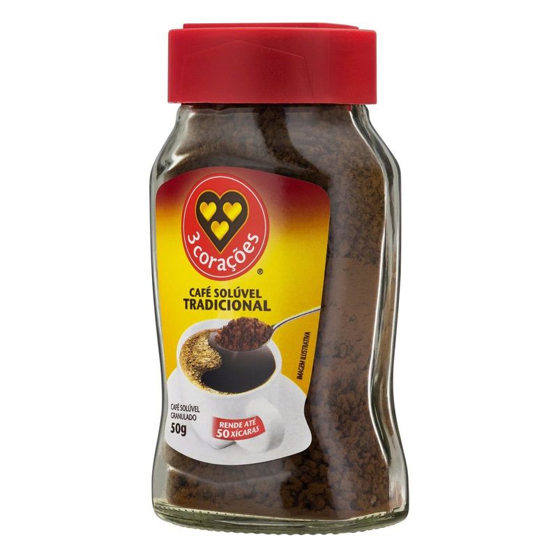 Café Solúvel 3 Corações Tradicional 50g – Sabor e Praticidade na Sua Rotina