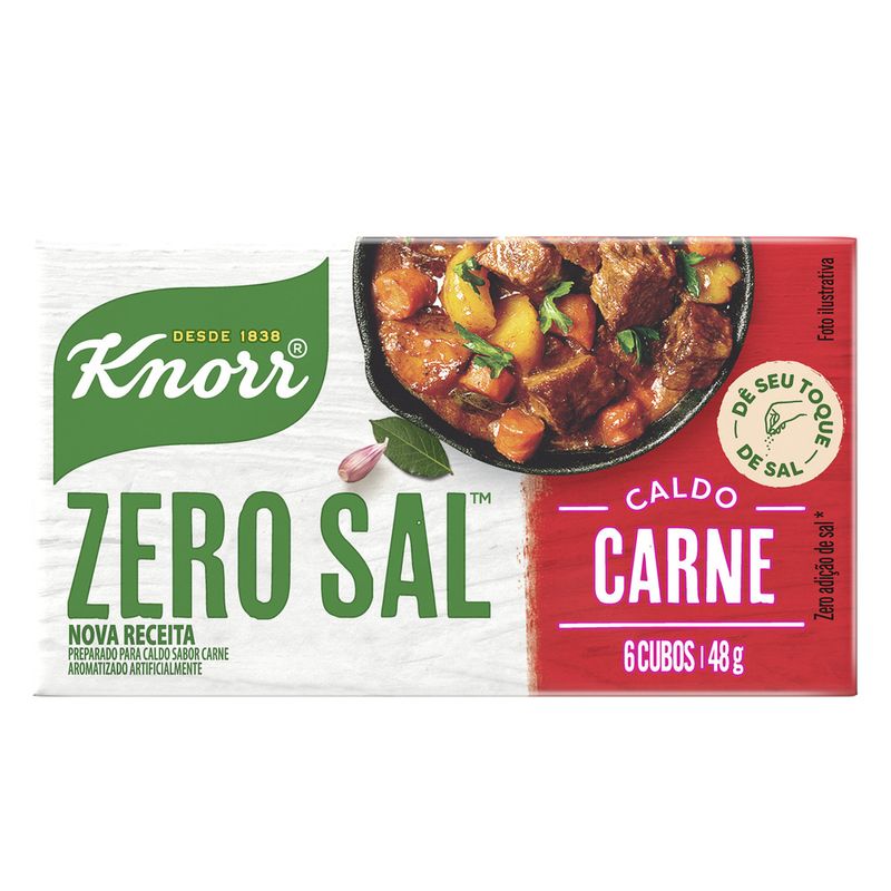 A busca por uma vida mais equilibrada e por produtos com menos sódio e mais naturais é um tema cada vez mais frequente nos lares de todo o Brasil e, pensando nisso, a Knorr lançou a primeira linha de caldos em cubos zero sal do mercado! O Caldo Knorr Zero Sal Carne é feito com mais ervas e especiarias selecionadas*, como louro, nos-moscada, alho, salsa, pimenta-vermelha, carne bovina, cúrcuma e concentrado natural de cebola para garantir ainda mais cor e sabor aos seus pratos. O Caldo de Carne Zero Sal não possui sal nem glutamato monossódico adicionado, e é ideal para o preparo de pratos do dia a dia, fornecendo sabor com suas ervas e especiarias cultivadas sustentavelmente, sem a preocupação com sódio! Para usar é muito simples: utilize 1 cubo de caldo Knorr para cada 600 g de alimento ou 500 ml de líquido quente, misture bem até dissolver e pronto: sua receita já conta com todo o sabor delicioso de Knorr! Que tal experimentar este tempero no preparo de uma saborosa abobrinha recheada com carne moída? Os Caldos Knorr Zero Sal são bons para você e bons para o planeta, pois possuem ingredientes cultivados respeitando o meio ambiente, além de serem produzidos em uma fábrica com zero emissão de gás carbônico! Conheça toda a nossa linha de caldos e garanta mais sabor às suas refeições com Knorr! *Comparado com alimento do mesmo fabricante