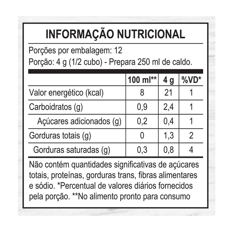 • Utilize 1 cubo do Caldo de Carne Knorr para cada 600 g de alimento. Nosso produto não possui sal adicionado. Dê seu toque de sal