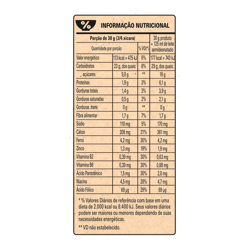 Feito com Cereais Integrais (44,8%) que preservam todos os nutrientes do grão, NESTLÉ® NESCAU® CEREAL contém 7 nutrientes (vitaminas B2, B3, B5, B6, B9, ferro e cálcio) e é super crocante - energia que dá gosto de viver.