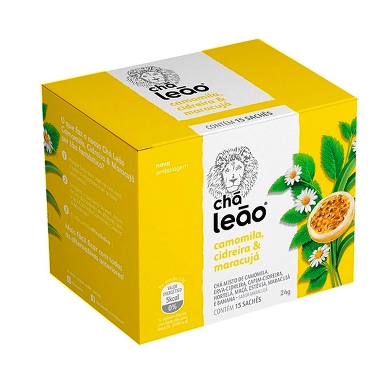 Chá Leão Camomila, Cidreira e Maracujá 24g – Sabor e Conforto em Cada Xícara