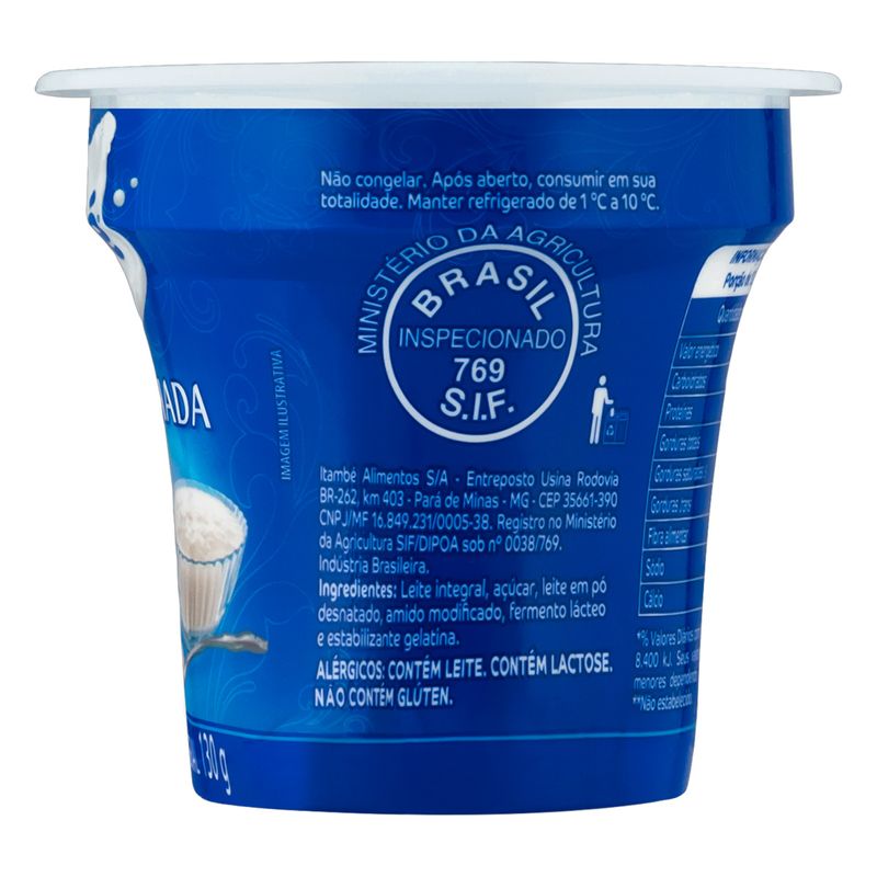 - Ingredientes: Leite integral, açúcar, fermentos lácteos e estabilizantes.