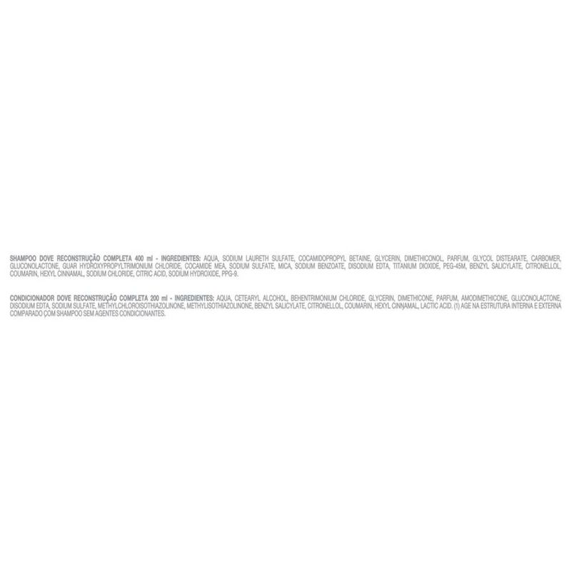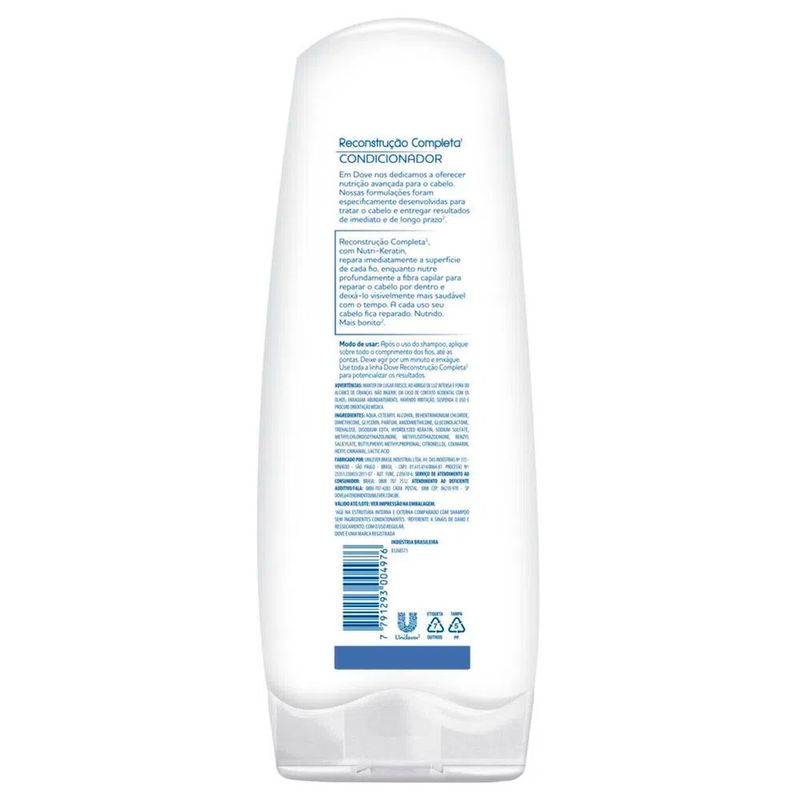 O Condicionador Dove Reconstrução Completa vem em uma embalagem de 200ml, ideal para uso diário. Sua textura cremosa e leve facilita a aplicação e o enxágue, tornando o cuidado com os cabelos uma experiência agradável e prática. Além disso, sua fragrância suave deixa os fios com um aroma delicado e duradouro.