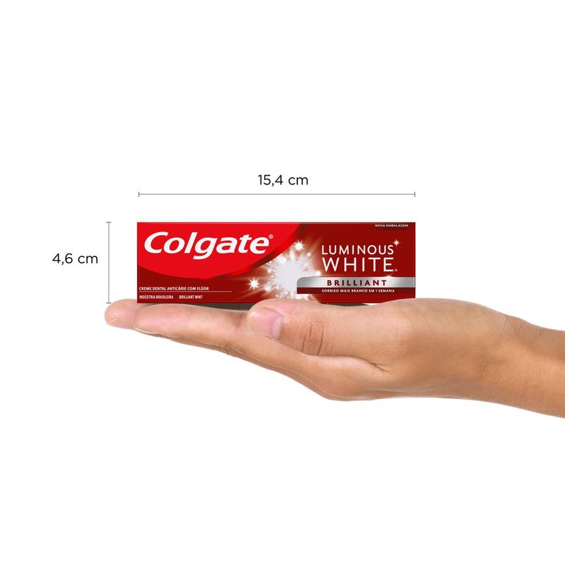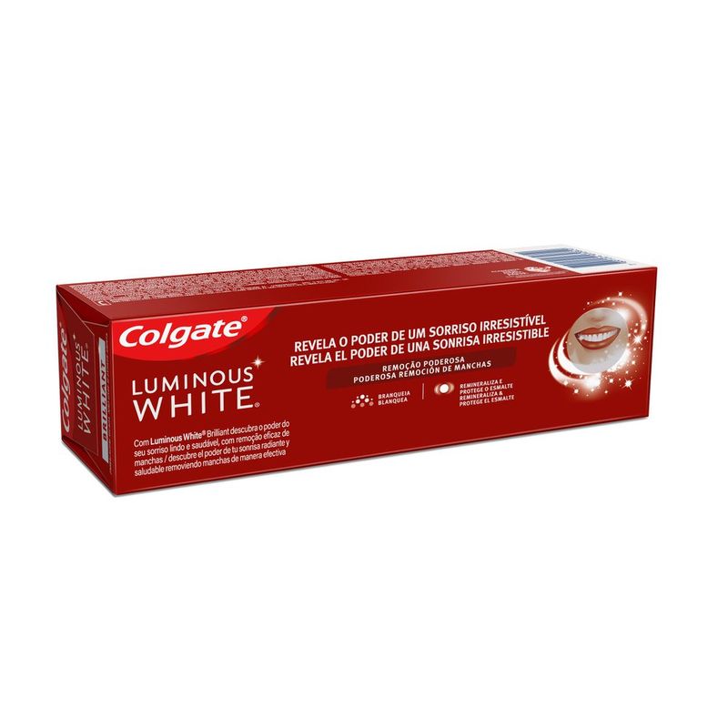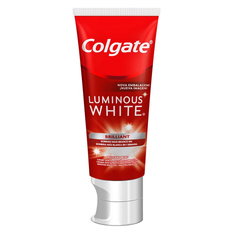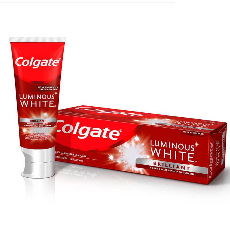 O creme dental clareador Colgate Luminous White Brilliant é um creme que contém uma poderosa tecnologia de clareamento dental para um sorriso mais branco em 1 semana.