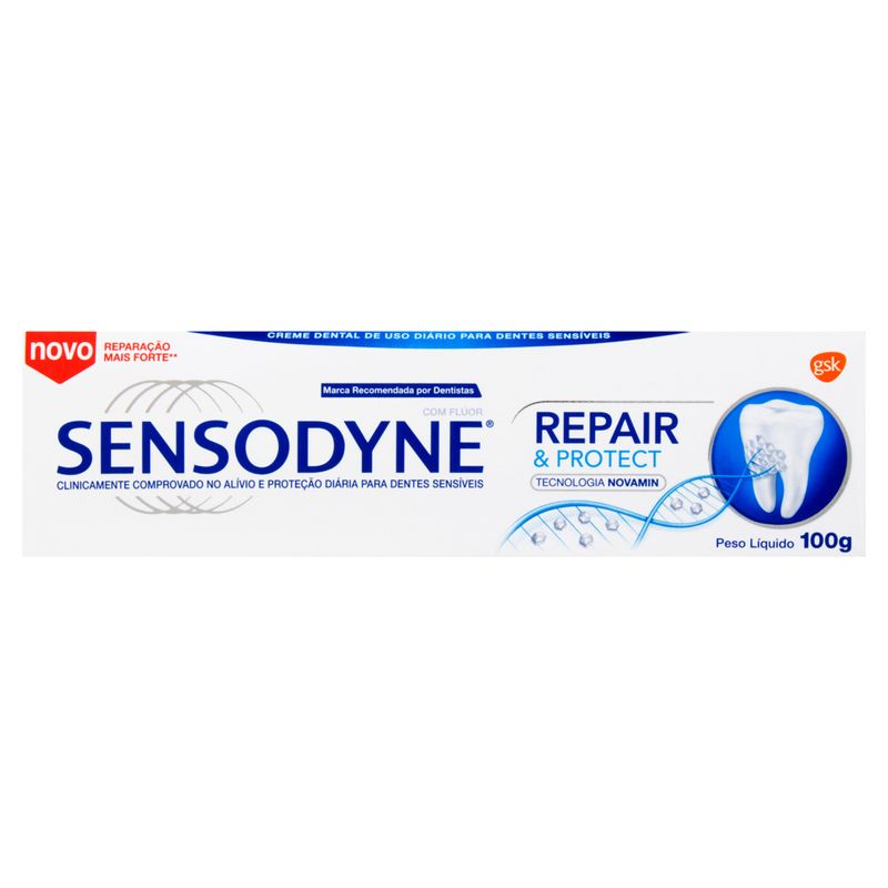O Creme Dental Sensodyne Repair&Protect vem em uma embalagem de 100g, ideal para uso prolongado. Sua textura cremosa e fácil aplicação garantem uma experiência de escovação eficiente e agradável. Além disso, o produto é dermatologicamente testado, assegurando que é seguro para o uso diário.