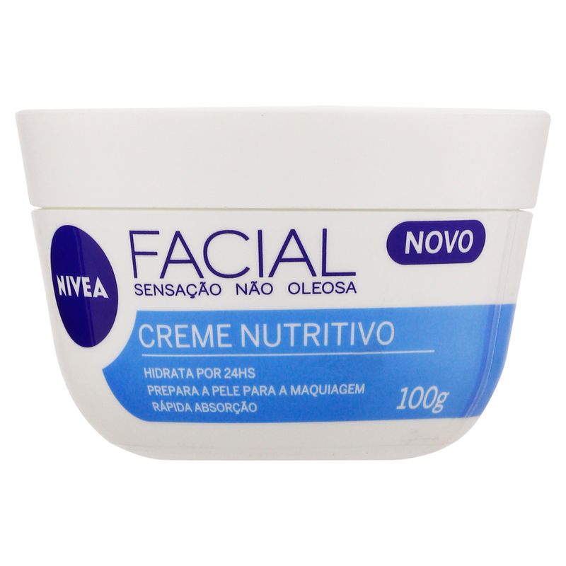 O que é? NIVEA Creme Facial Nutritivo é um hidratante para o rosto que cuida da pele sem deixá-la oleosa. Para que serve? Com fórmula à base de água, Karité e Vitaminas, esse creme deixa a pele com aspecto saudável e bonito. Além disso, ele funciona como um ótimo primer, preparando a pele para a aplicação da maquiagem. Com benefícios como hidratação por 24 horas e não deixar a pele oleosa, o Creme Facial NIVEA Nutritivo é perfeito para quem busca uma pele bem cuidada e pronta para o dia a dia. O NIVEA Creme Facial Nutritivo é um verdadeiro aliado para o cuidado da pele do rosto, oferecendo uma solução abrangente para manter a sua pele saudável, hidratada e preparada para o dia a dia. Benefícios e diferenciais: - Hidratação por 24 horas - Não deixa a pele oleosa - Prepara a pele para a maquiagem - Contém manteiga de Karité - Rápida absorção