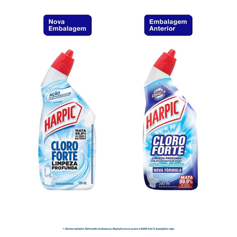 Harpic Líquido Cloroforte é o desinfetante sanitário em gel, com cloro, que oferece ação branqueadora e elimina até 99,9% de bactérias e vírus, incluindo da COVID-19. Elimina mancha de limo e mofo, deixando o vaso brilhante e com agradável cheiro de limpeza.