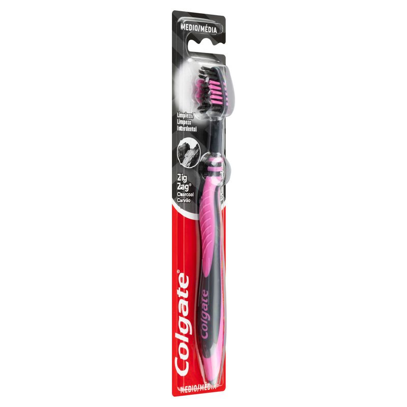 Escova Dental Colgate Zig Zag Cabeça Normal Média Infusão de Carvão