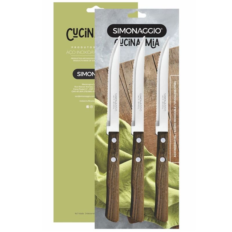 Faca de Mesa Simonaggio Madeira com 3 Unidades