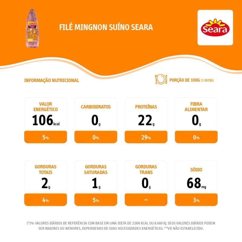 O Filé Mignon Suíno Seara Porcionado é um produto que pesa aproximadamente 600g, ideal para o preparo de diversas refeições. Com esse corte, você pode preparar uma variedade de pratos suculentos para servir no dia a dia ou aos seus convidados, como escalope de filé mignon suíno com purê de batatas cremoso ou uma receita prática e saborosa de estrogonofe para o dia a dia. Este corte é considerado uma carne nobre, conhecida por ser macia e suculenta. O tamanho do Filé Mignon Suíno Seara Porcionado é ideal para o preparo no dia a dia, facilitando a criação de refeições rápidas e deliciosas, seja no forno, na grelha ou na panela, o que a torna extremamente versátil.