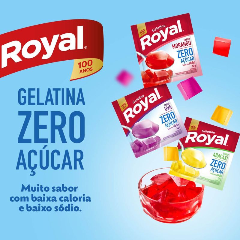 A embalagem contém 12g de gelatina em pó, que rende uma porção generosa. É importante armazenar em local fresco e seco, longe da luz direta, para garantir a qualidade do produto. Com a Gelatina em Pó Royal Zero, você tem a garantia de um sabor delicioso e uma sobremesa que pode ser apreciada a qualquer momento do dia.