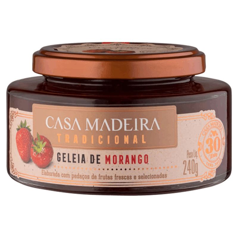 Geleia Casa Madeira Morango c/ Pedaços de Frutas Frescas Vidro 240g