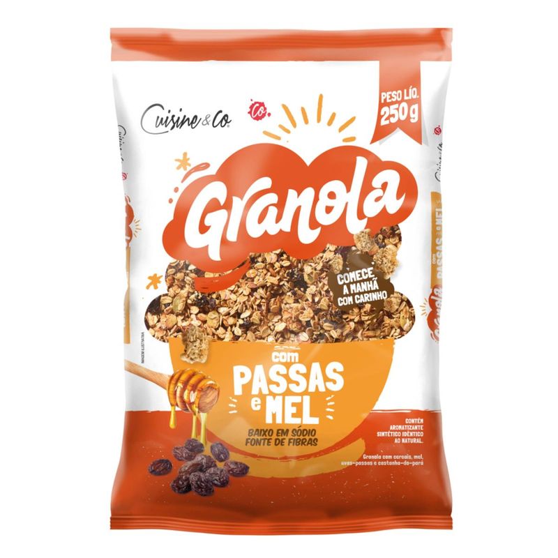 Feita com ingredientes de alta qualidade, a Granola Cuisine&Co é rica em fibras e nutrientes essenciais. As passas adicionam um sabor doce natural, enquanto o mel oferece um toque de suavidade, tornando essa granola uma escolha saborosa e saudável. Além disso, sua composição é livre de aditivos artificiais, garantindo um produto que respeita a sua saúde.