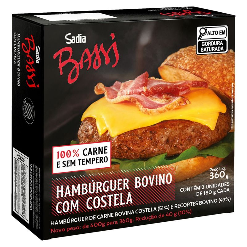 O hambúrguer bovino Sadia vem em uma embalagem de 360g, ideal para porções individuais ou para compartilhar. Para melhor conservação, mantenha o produto congelado até o momento do preparo. Siga as instruções de cozimento na embalagem para garantir que seu hambúrguer fique perfeito, com uma crocância por fora e suculência por dentro.