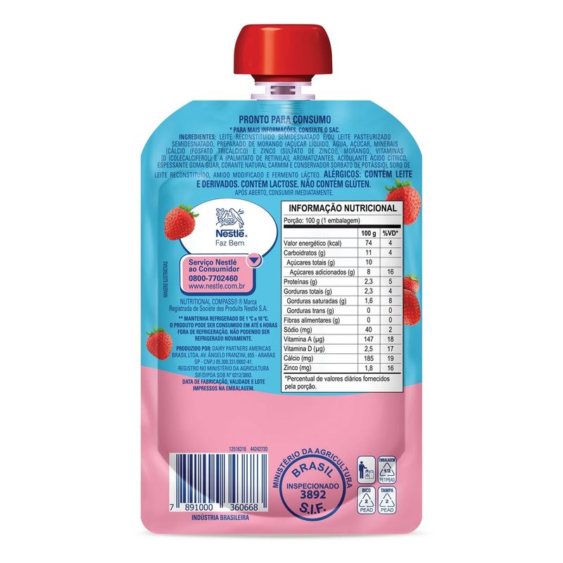 Nestlé Chambinho® Pouch sabor morango com 100G é a escolha perfeita para mães que buscam praticidade e sabor em um único produto na hora de alimentar seus pequenos. Com uma embalagem divertida para a lancheira das crianças, o famoso Chambinho® vem em um formato prático que permite o produto ficar até 6h fora da geladeira, não podendo ser refrigerado novamente. Nestlé Chambinho® Pouch é fonte de nutrientes essenciais para o crescimento dos pequenos. É fonte de cálcio, zinco e vitaminas A e D, portanto você pode contribuir que seus filhos estejam recebendo alguns dos nutrientes necessários para o desenvolvimento de ossos fortes e sistema imunológico. Experimente o Nestlé Chambinho® Pouch e descubra como a praticidade, o sabor e a nutrição podem caminhar juntos em um único produto. Opte por essa escolha para a alimentação de seus filhos e proporcione-lhes uma experiência de sabor inesquecível!