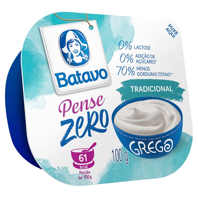 Iogurte Parcialmente Desnatado Grego Batavo Zero Lactose Pense ZeroTradicional 100g