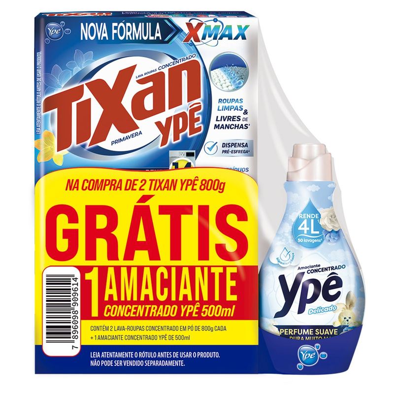 Kit Sabão em Pó Tixan Ypê Primavera 800g 2 Unidades + Grátis Amaciante Concentrado Ypê 500ml