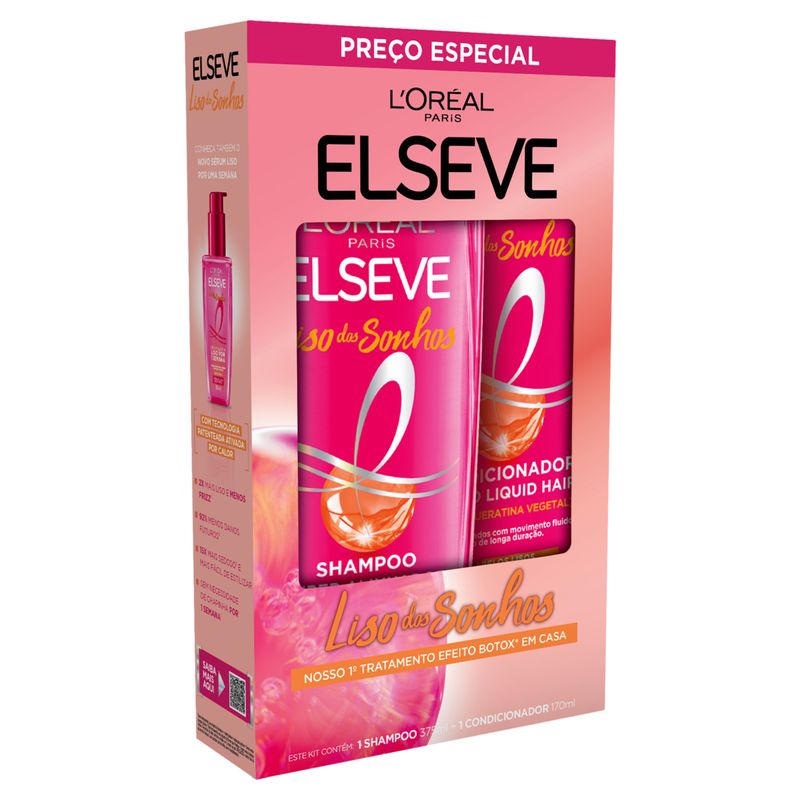 O Kit Elseve Liso dos Sonhos é a escolha ideal para quem busca cabelos lisos, sedosos e cheios de brilho. Composto por um shampoo de 375ml, este kit foi desenvolvido para proporcionar um tratamento completo que facilita o dia a dia na hora de cuidar dos fios. A fórmula exclusiva ajuda a alinhar a fibra capilar, garantindo um resultado de salão no conforto da sua casa.