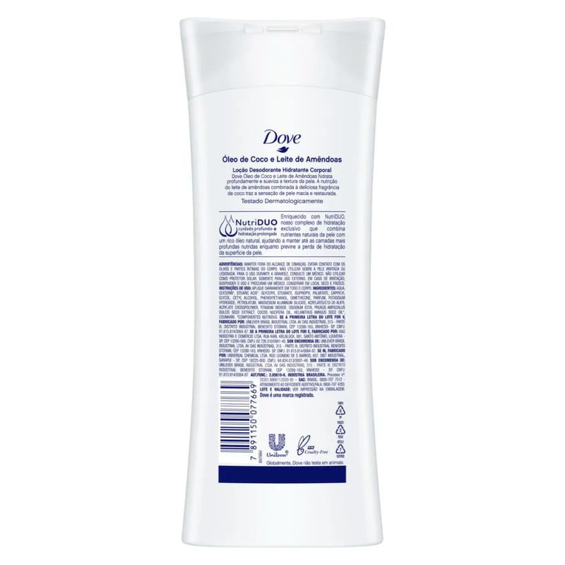 LOCAO HID DOVE CORP 400ml – Hidratante Corporal com Óleo de Coco