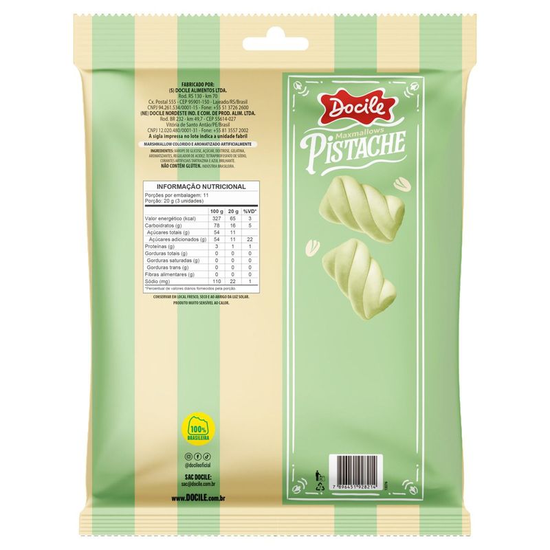 MARSHMALLOW DOCILE MAXMALL PISTACHE 220g – Sabor e Textura Irresistíveis