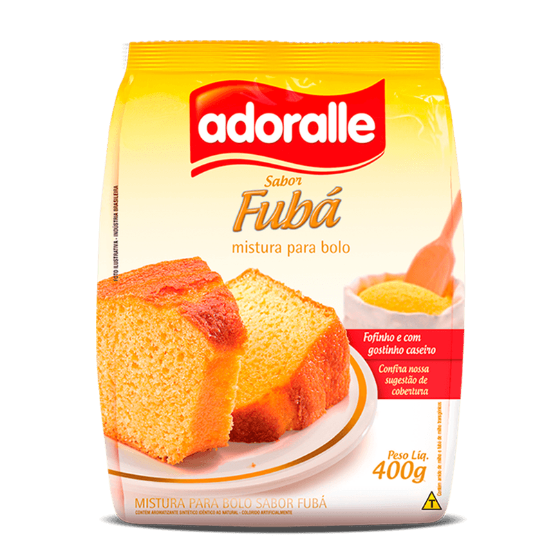 A receita tradicional de bolo de fubá é um clássico nas mesas brasileiras. Com a Mistura para Bolo Adoralle, você traz esse sabor e a conexão com as suas origens para dentro de casa de forma rápida e eficaz, convidando todos a desfrutar de um momento especial ao redor da mesa.