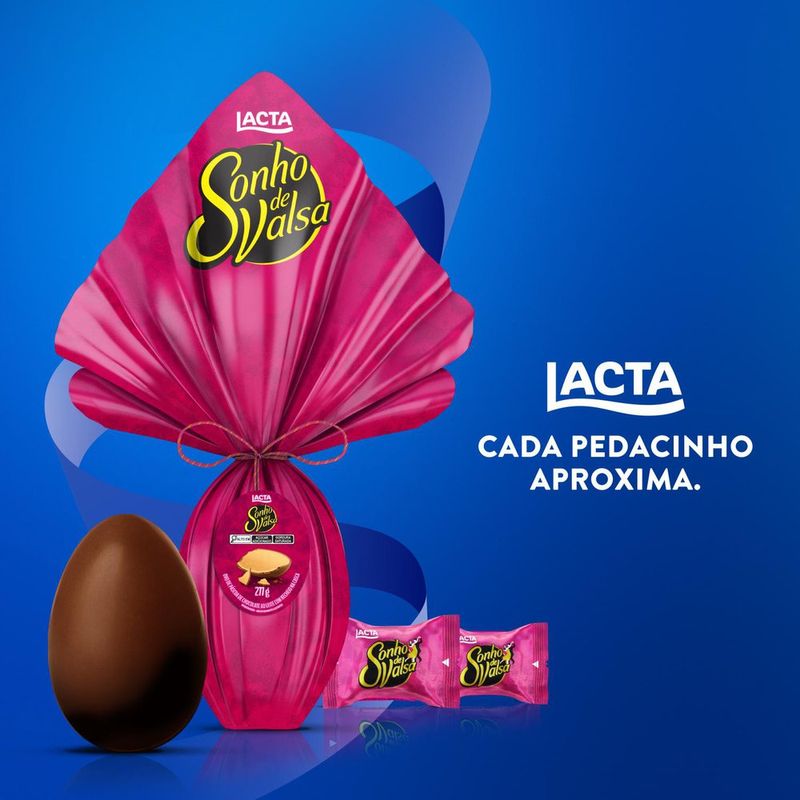 Compre agora o Ovo de Páscoa Lacta Sonho de Valsa 277g. É a combinação perfeita de um recheio cremoso de amendoim e castanha de caju, com a crocância do wafer e sua deliciosa camada sabor chocolate. Perfeito para aproveitar com toda a família, ou para presentear parentes e amigos. Compre já! Embalagem individual 277g. Tabela Nutricional e Alergênicos: Veja a tabela nutricional e ingredientes nas imagens. Produto com Alto Teor de Açúcar Adicionado e Gordura Saturada.