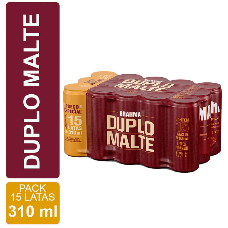 Brahma Duplo Malte possui dois tipos de malte, uma combinação surpreendente entre a leveza do Malte Pilsen e o sabor do Malte Munich: equlíbrio perfeito entre sabor e refrescância. Temos uma cerveja puro malte dourada e com aquela espuma cremosa que você já ama. A única com Brahmosidade. Brahmosidade é a cremosidade que só a Brahma Duplo Malte tem!