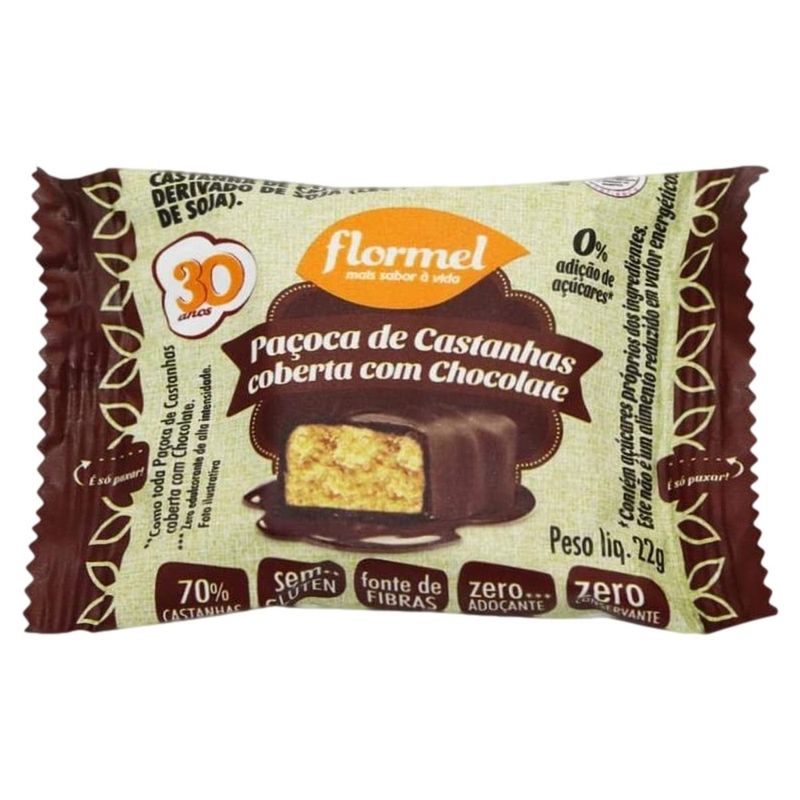 Paçoca Flormel Zero Castanha Coberta c/ Chocolate 22g