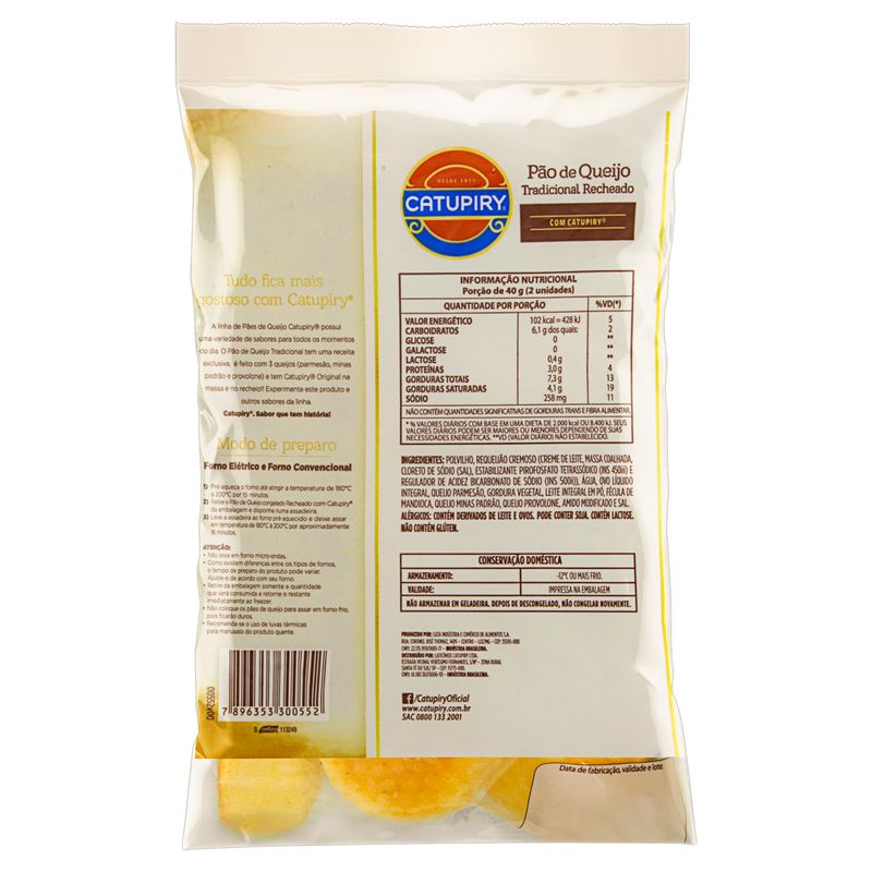 Para melhor aproveitamento do sabor e da textura, recomenda-se assar o Pão de Queijo em forno pré-aquecido a 180°C por cerca de 20 minutos ou até que estejam dourados. Sirva quente e aproveite a combinação perfeita de sabor e tradição que o Pão de Queijo Catupiry oferece.
