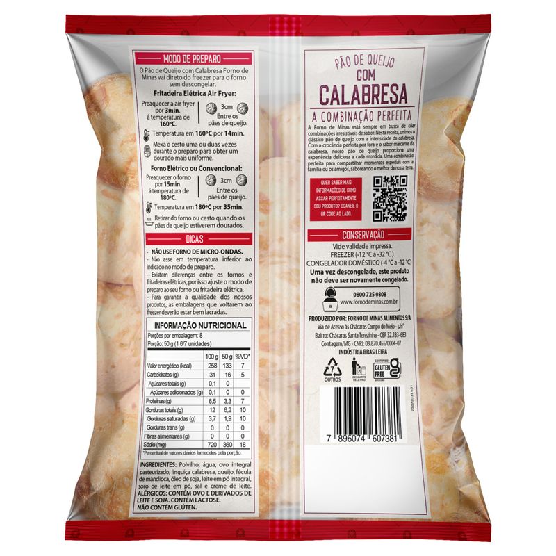 Pão de Queijo Forno de Minas com Calabresa Tradicional Congelado 400g