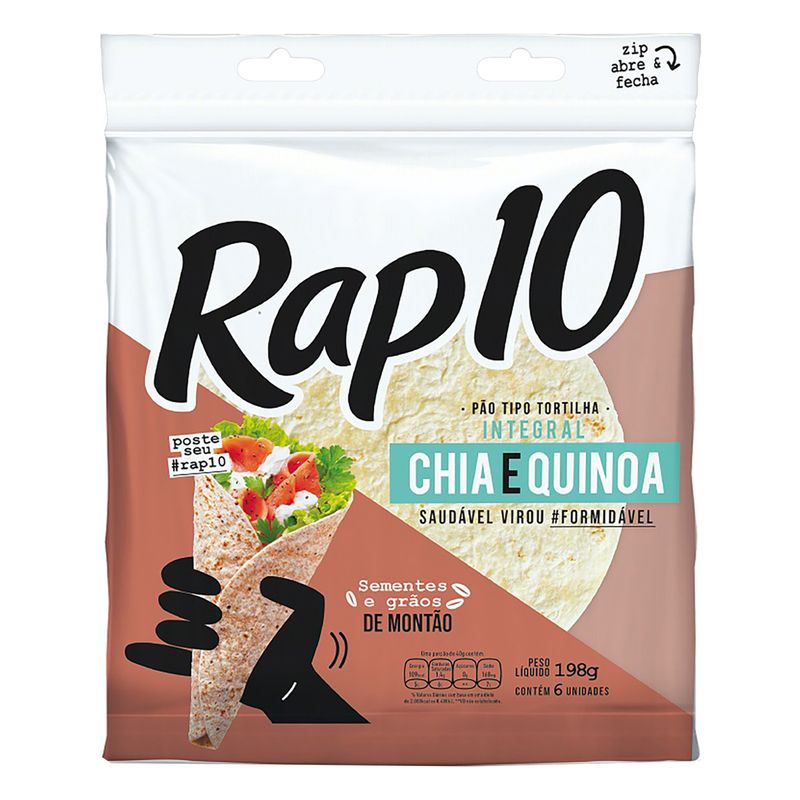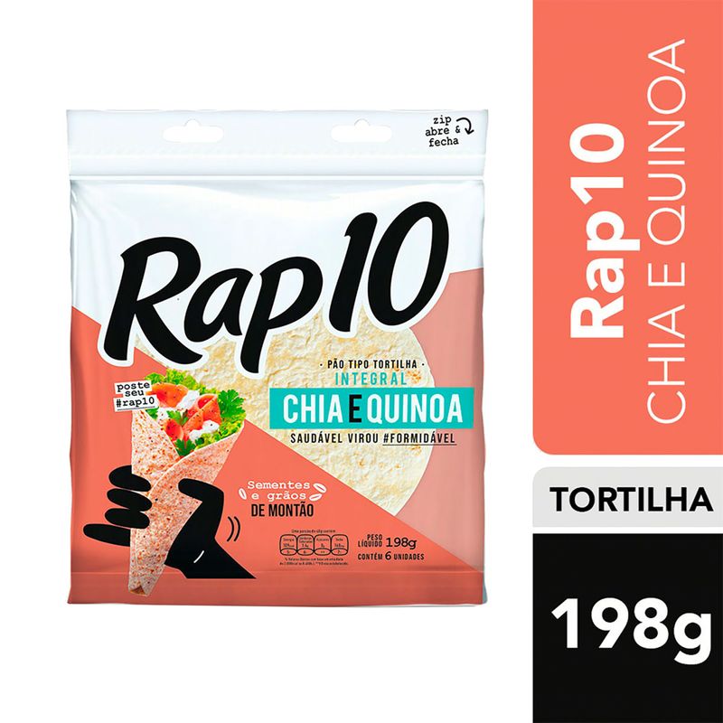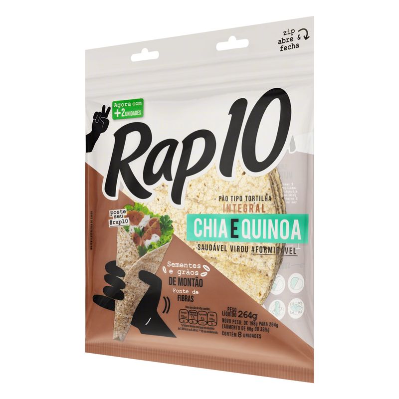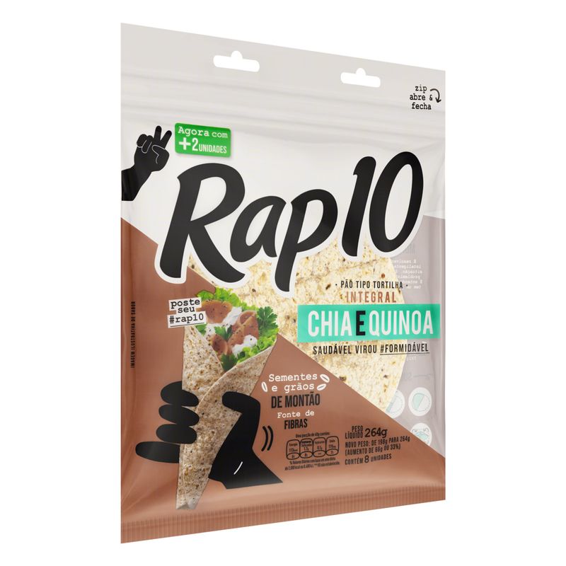 Pão Tipo Tortilha Rap10 Integral Chia/Quinoa 264g