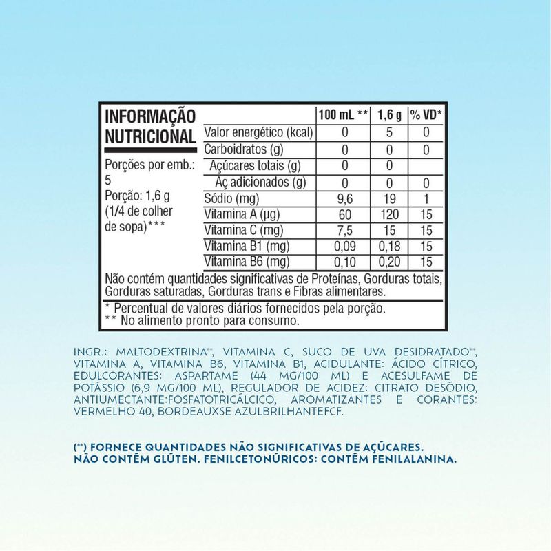 Este refresco em pó é extremamente fácil de preparar. Basta dissolver o conteúdo de um sachê em água, e você terá uma bebida saborosa e revigorante. Sua fórmula leve permite que você desfrute de um sabor autêntico de uva, sem comprometer sua dieta. É uma excelente alternativa para quem deseja reduzir a ingestão de açúcar, sem abrir mão do prazer de uma bebida gostosa.