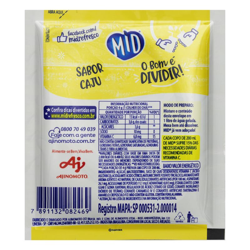 Refresco em Pó Mid 20g - Sabor Caju