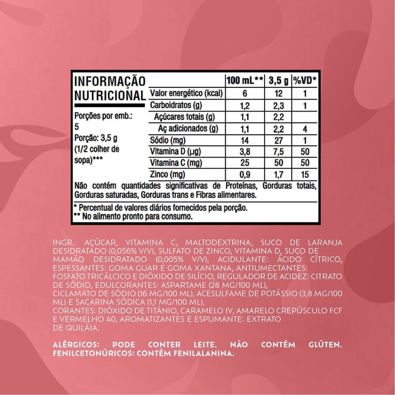 O Refresco em Pó Tang com sabor de Laranja e Mamão é a escolha perfeita para quem busca uma bebida refrescante e saborosa. Com apenas 18g, este produto é ideal para preparar uma deliciosa bebida que vai agradar a toda a família. A combinação dos sabores cítricos da laranja com a doçura do mamão proporciona uma experiência única, perfeita para os dias quentes ou para acompanhar momentos especiais.