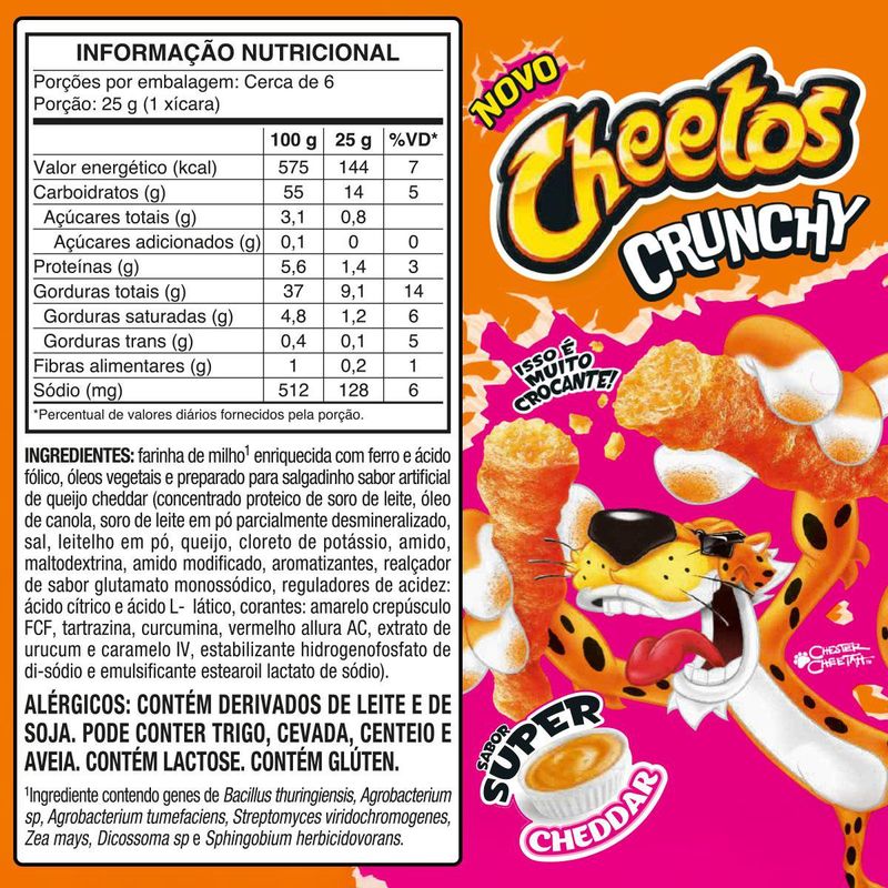 CHEETOS® é a marca líder no mercado de salgadinhos no Brasil, logo, no segmento de extrusados. Feito à base de milho, assado e sempre entrega uma explosão de sabor. Sempre traz inovação e diversão entre amigos e família com os deliciosos salgadinhos e o querido Chester Cheetah®. Acompanhe nossas redes sociais para mais informações!